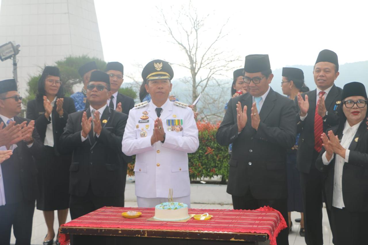 Bupati Tapanuli Utara Dr. Jonius Taripar Parsaoran Hutabarat, S.SI, M.Si pimpin Upacara Peringatan Hari Otonomi Daerah ke-XXX Tahun 2026 dengan tema “Dengan Otonomi Daerah kita Wujudkan Asta Cita”, di Halaman Kantor Bupati Taput, Tarutung. Senin (27/04-2026).