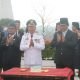 Sementara Bupati Toba, Effendi Sintong P. Napitupulu bersama Ketua TP. PKK Kabupaten Toba Ny. Astita Effendi Napitupulu didampingi jajaran Forkopimda yang terdiri dari Kapolres Toba AKBP VJ. Parapaga, Pabung Toba Mayor